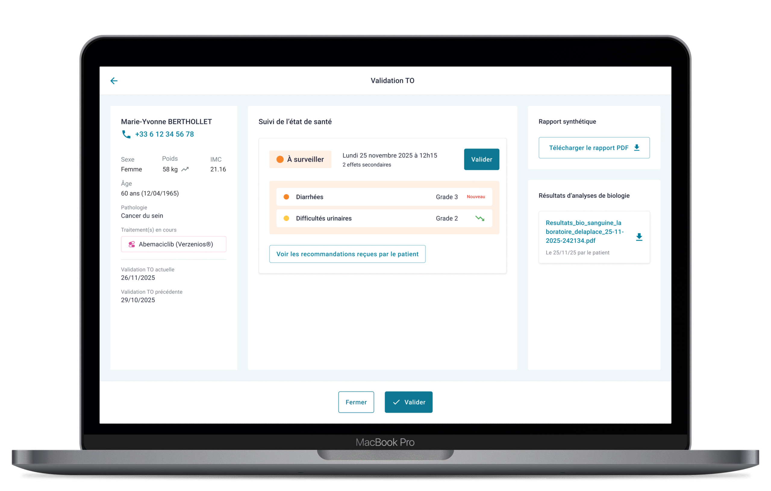 • Organiser le suivi de vos patients en thérapie orale en planifiant vos validations TO.