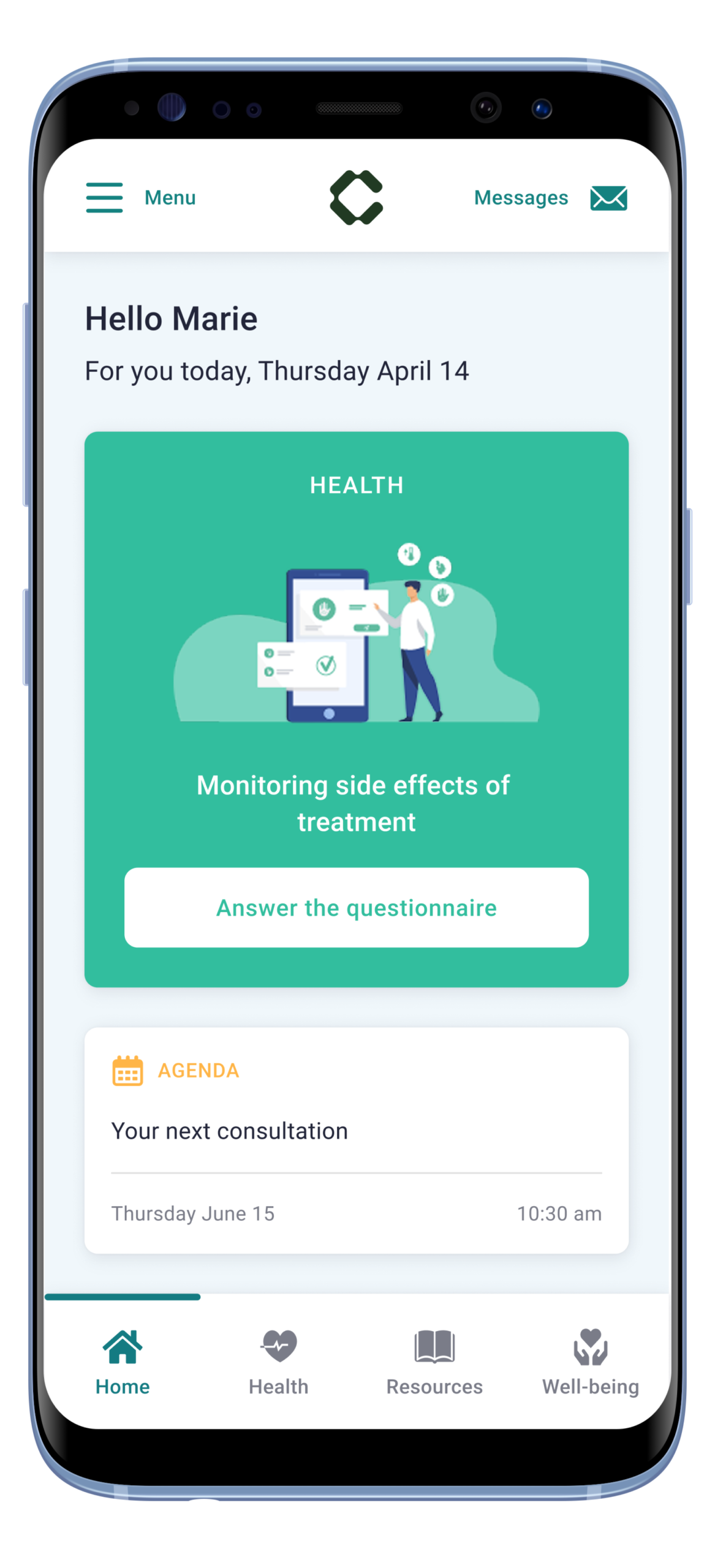 Patients or their clinical team can use the platform independently, on their computer, tablet or cell phone. At regular intervals, patients complete a monitoring questionnaire specific to their treatment or protocol.